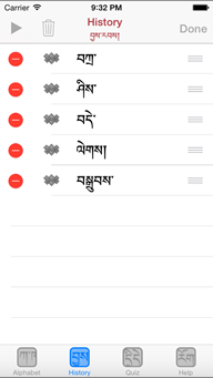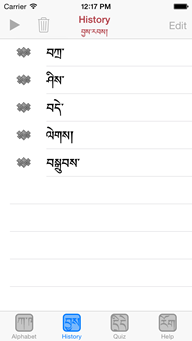 This History screen, displays the roster of syllables that you have entered in the Alphabet screen. Tap the particular line to sound out the syllable or tap the top left Play button to sound out the entire roster of syllables.